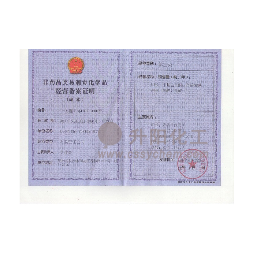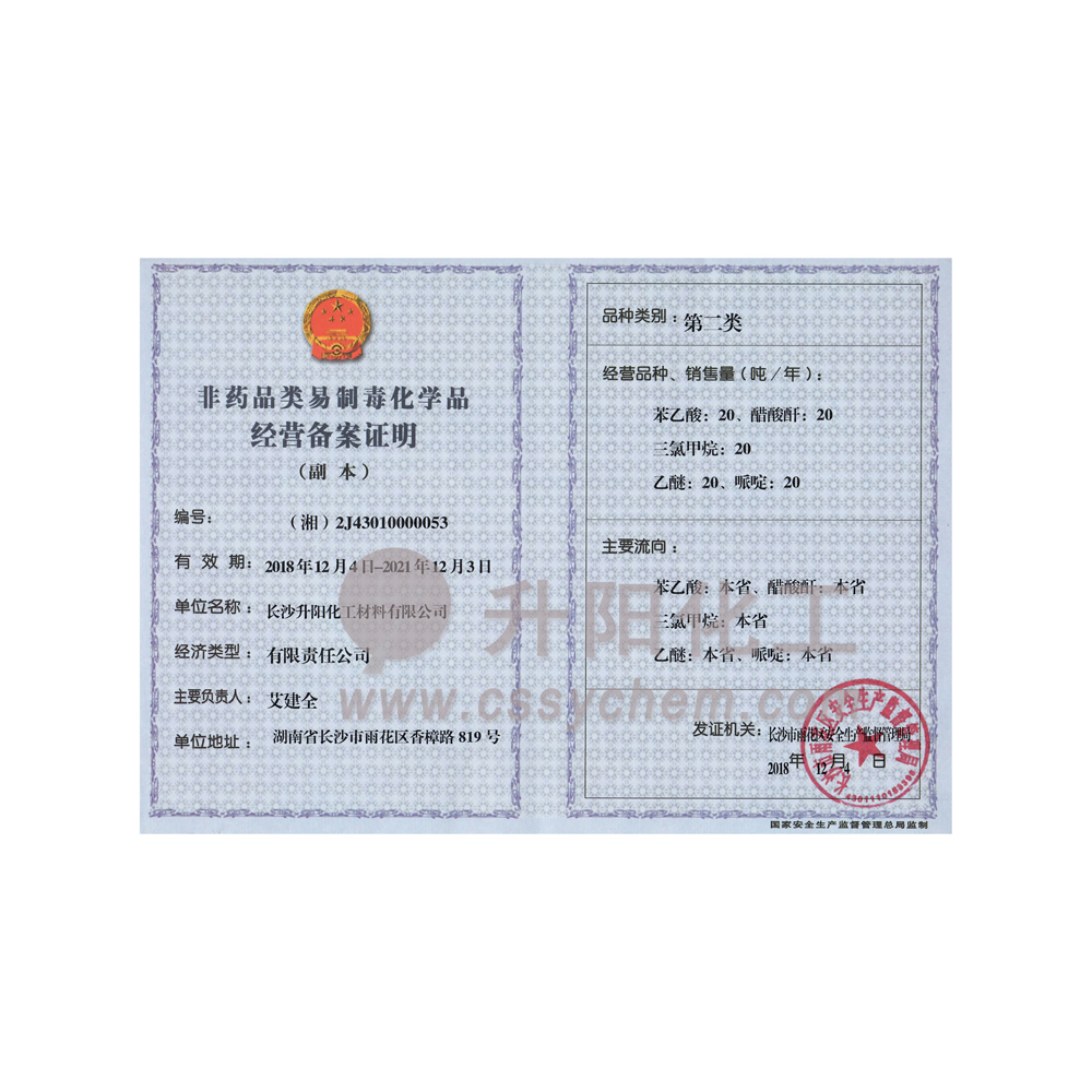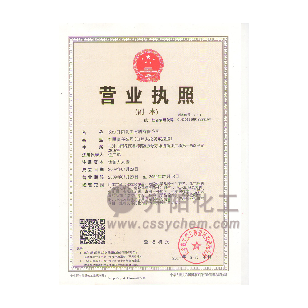 长沙升阳化工材料有限公司成立于2009年,是一家已经拥有10年化工原料经营历史的企业。我们本着“服务至上,以诚为本”的原则,为广大的新老客户提供最优质的产品、最便捷的服务。历经10多年的积淀与发展,现已成长为湖南省颇具规模的专业化学品服务供应商之一。?公司集贸易,科研,仓储,物流为