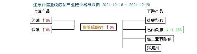 本周国内工业级焦亚硫酸钠市场价格暂稳,焦亚硫酸钠上游纯碱和硫磺价格本周价格暂稳,下游己内酰胺价格下跌0.59%,下游市场成交冷清对焦亚硫酸钠市场影响有限,焦亚硫酸钠厂家报价维持稳定。(以上价格均指国内主流企业对外报价,部分未报企业暂不在其范围内,价格仅供参考,与厂家最终定价无关,详情请联系各厂家咨询)。